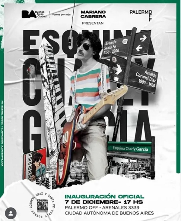 El legendario artista argentino Charly García sigue sumando reconocimientos: el próximo 7 de diciembre se colocará la placa de la Esquina Charly García en Coronel Díaz y Santa Fe, a metros del departamento del exintegrante de Sui Generis y Serú Girán.